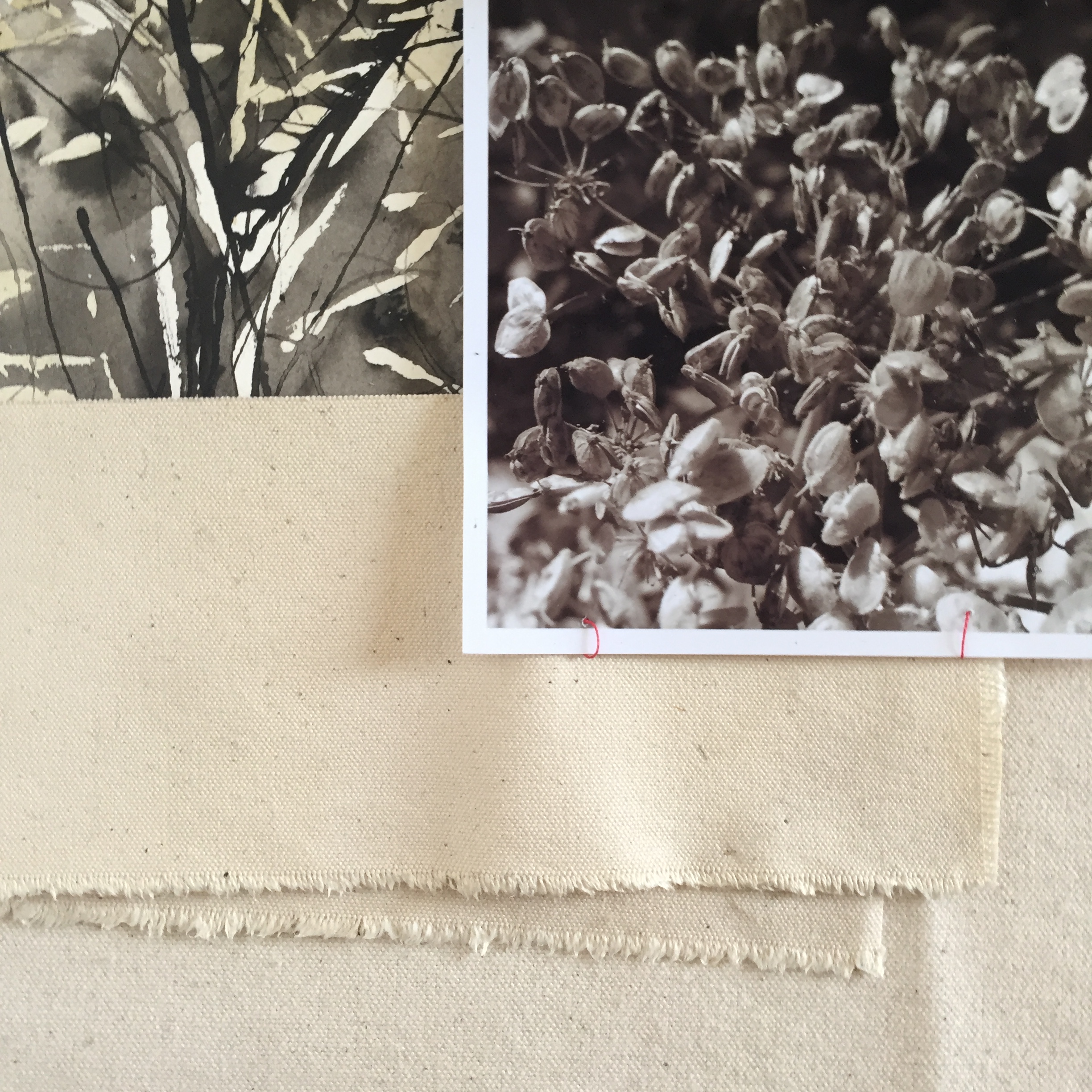 I made works through a process of piecing together. My compositions on canvas are pieced loosely: tacked and pinned, as if making a piece of clothing or a quilt.