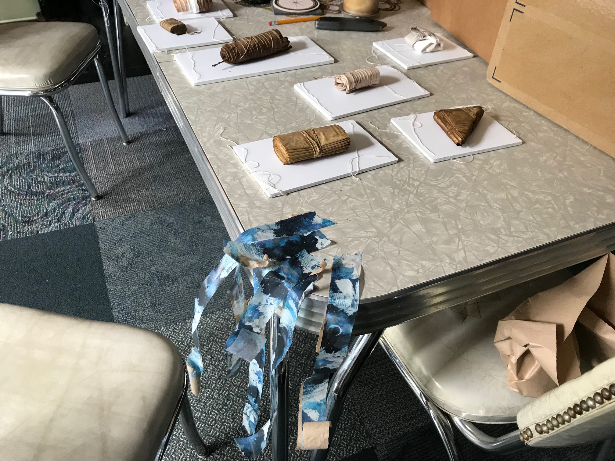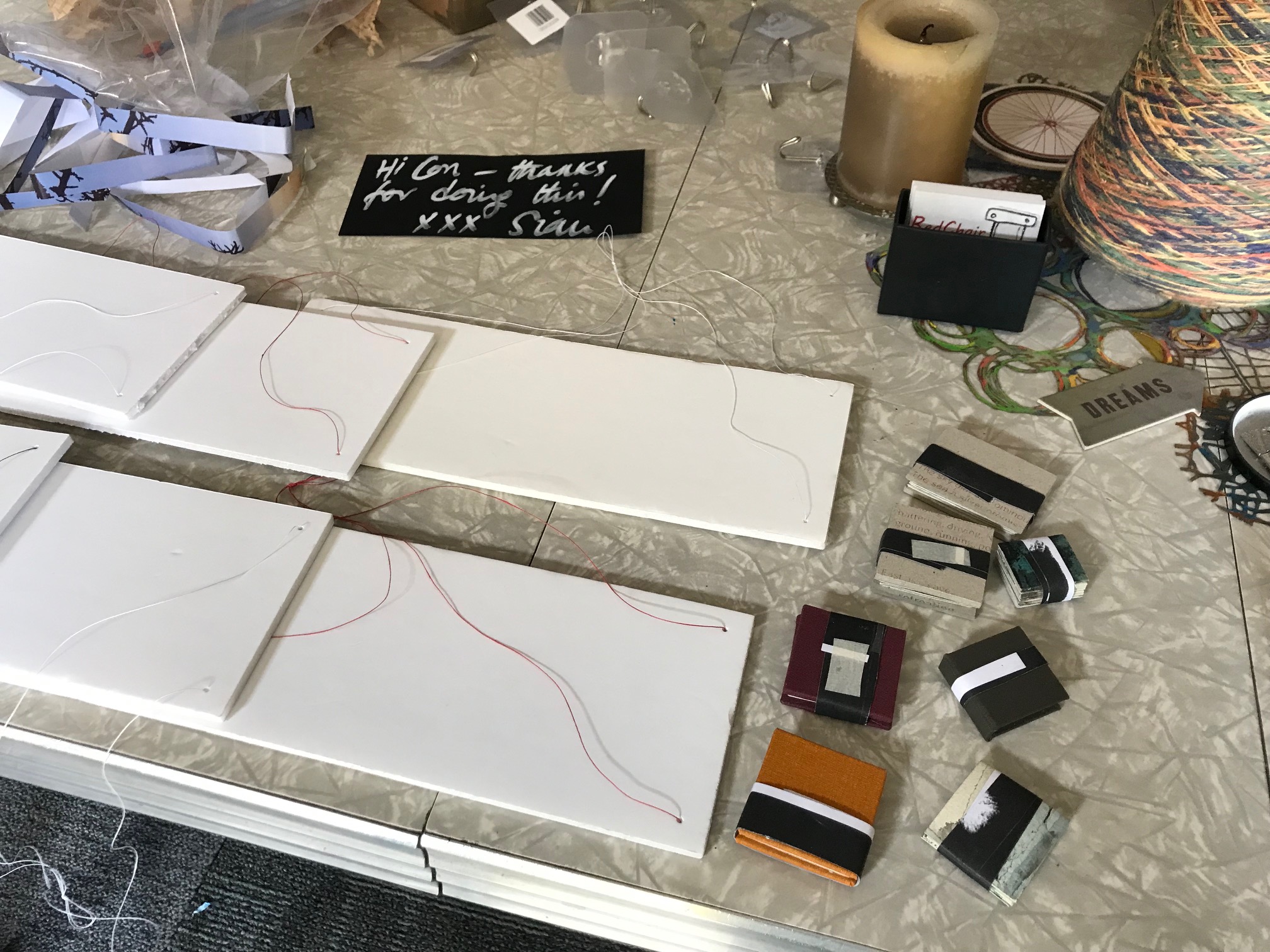 California-based artist Jen Smith and myself have put together a collaborative exhibition of tiny works, to be shown through October and November. Both of us prepared a written piece and artworks, then posted seven artworks with seven shelves to Con, to be hung opposite one another in the street-facing windows of Red Chair Studios. You can find out more on our project website, here.