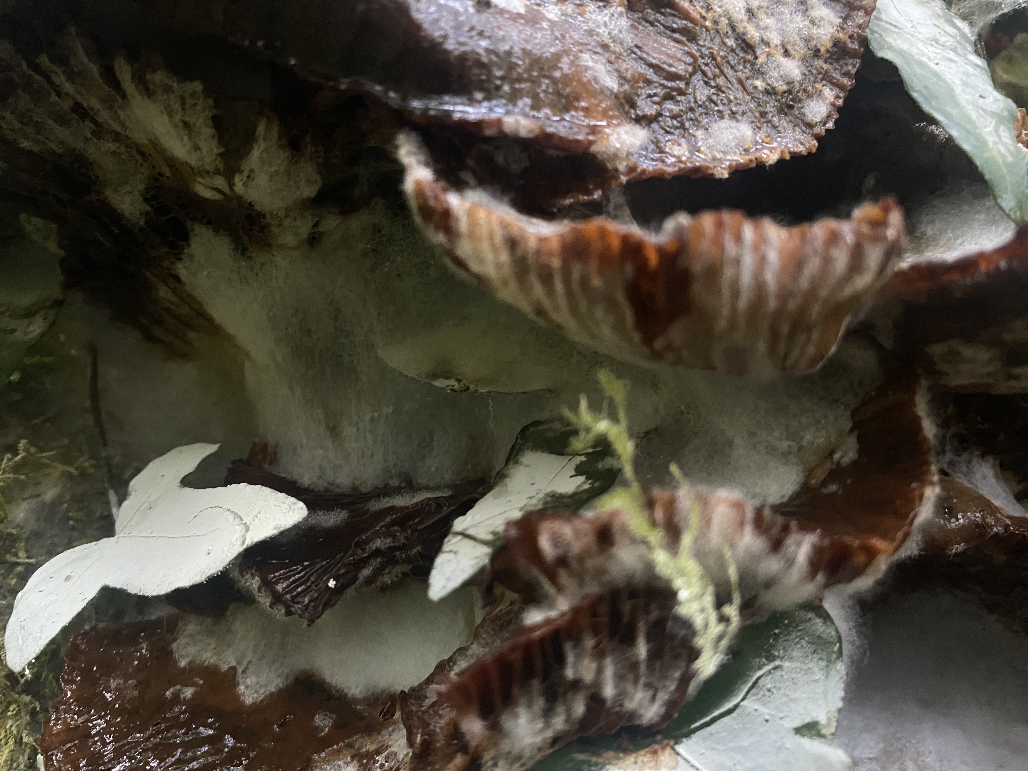 This is a selection from a series of photos taken over the last few years, as I have been walking in the valley here, learning how to pay attention. As I do this work, I am making a practice of noticing, as well as I can, the beauty in the small and very ordinary stories, and of noting the importance of what is happening in these places. There is importance in this work of noticing, it changes my relationships with who and what I encounter. Through it, the conditions arise for something new to emerge. I think of these as photographic portraits of the plants and fungi that arise in this place.