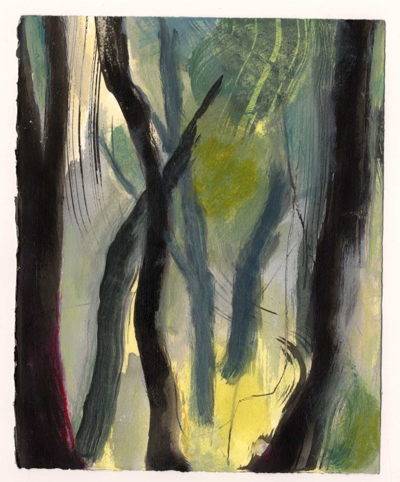 I am ducking through and under this thicket one day, heading for the river bank. I’m following a path that is getting smaller and smaller: it is a path, a badger-way, a rabbit-way, a mouse-way; there is mud on my knees and I have snagged my clothes, there are thorns in my skin, twigs in my hair.